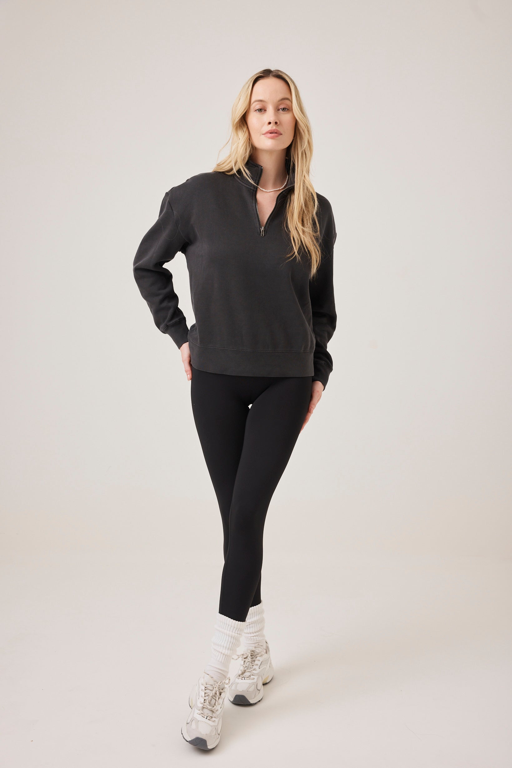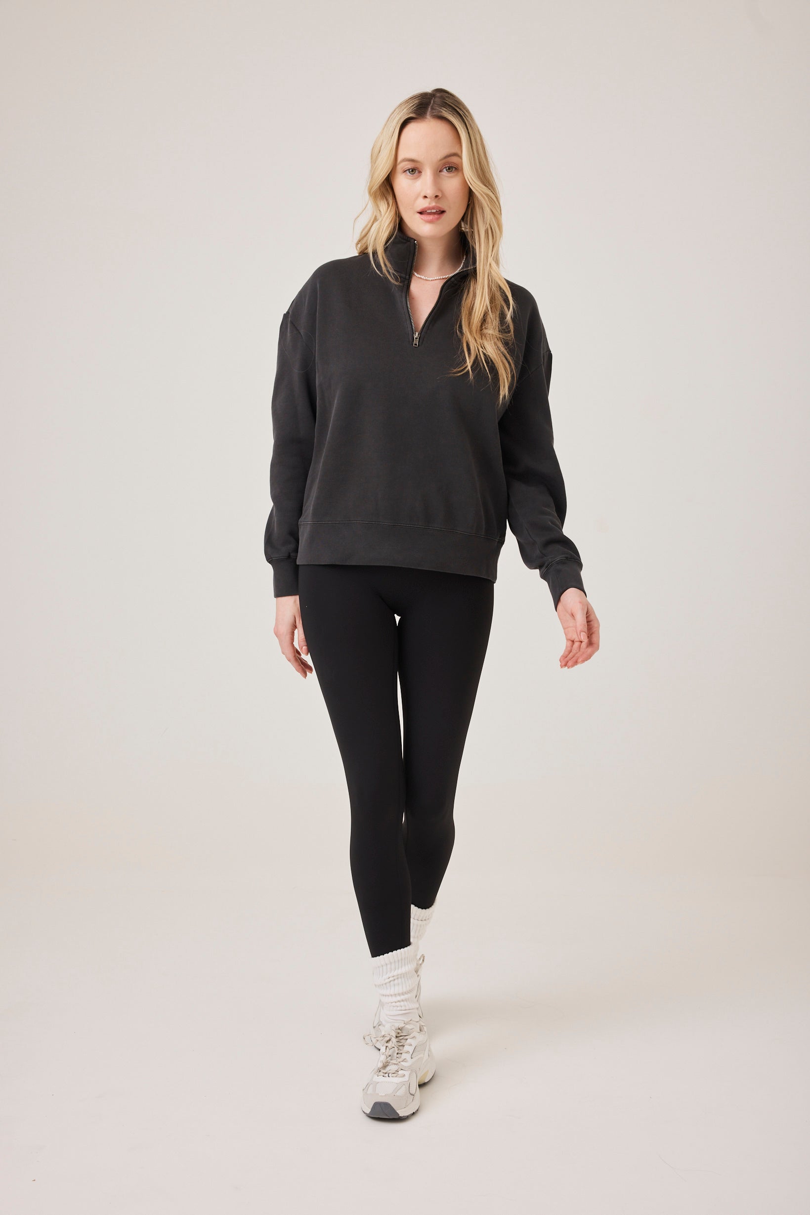 Our Quarter Zip Jumper is crafted from soft, heavy weight cotton with a relaxed silhouette and dropped shoulders for that effortless laidback fit. It's the perfect outerwear piece to layer over your casual staples, adding warmth and style with ease.